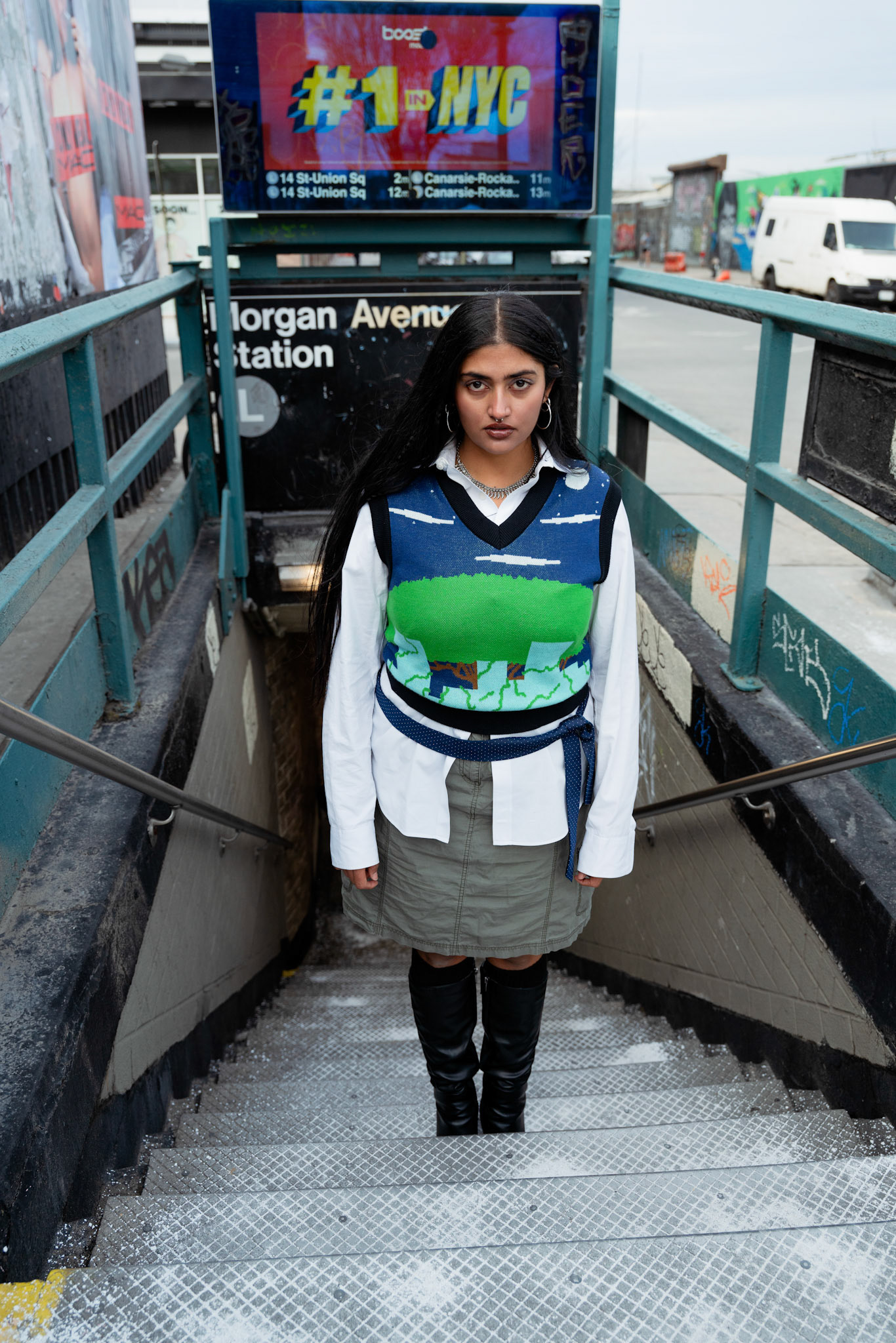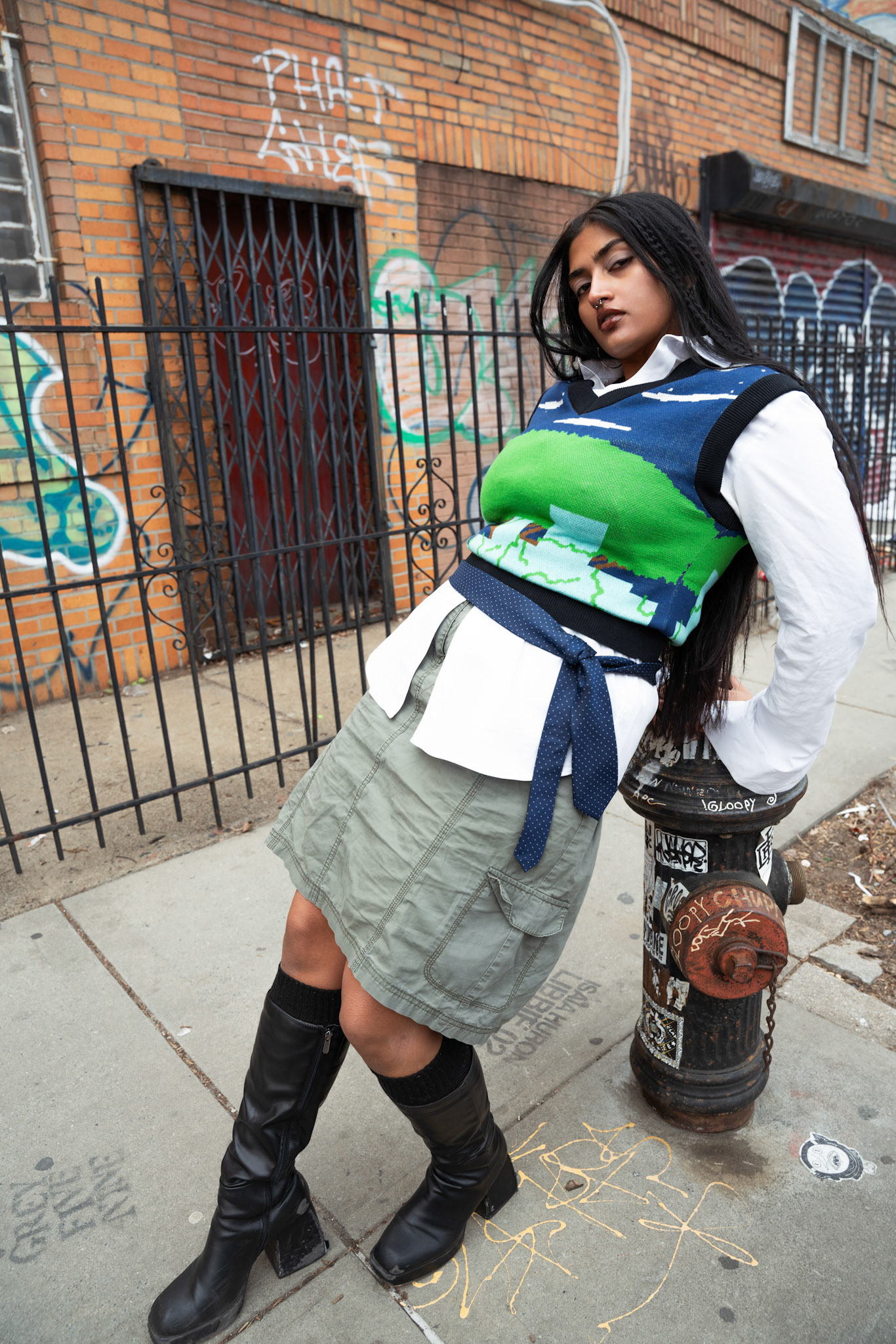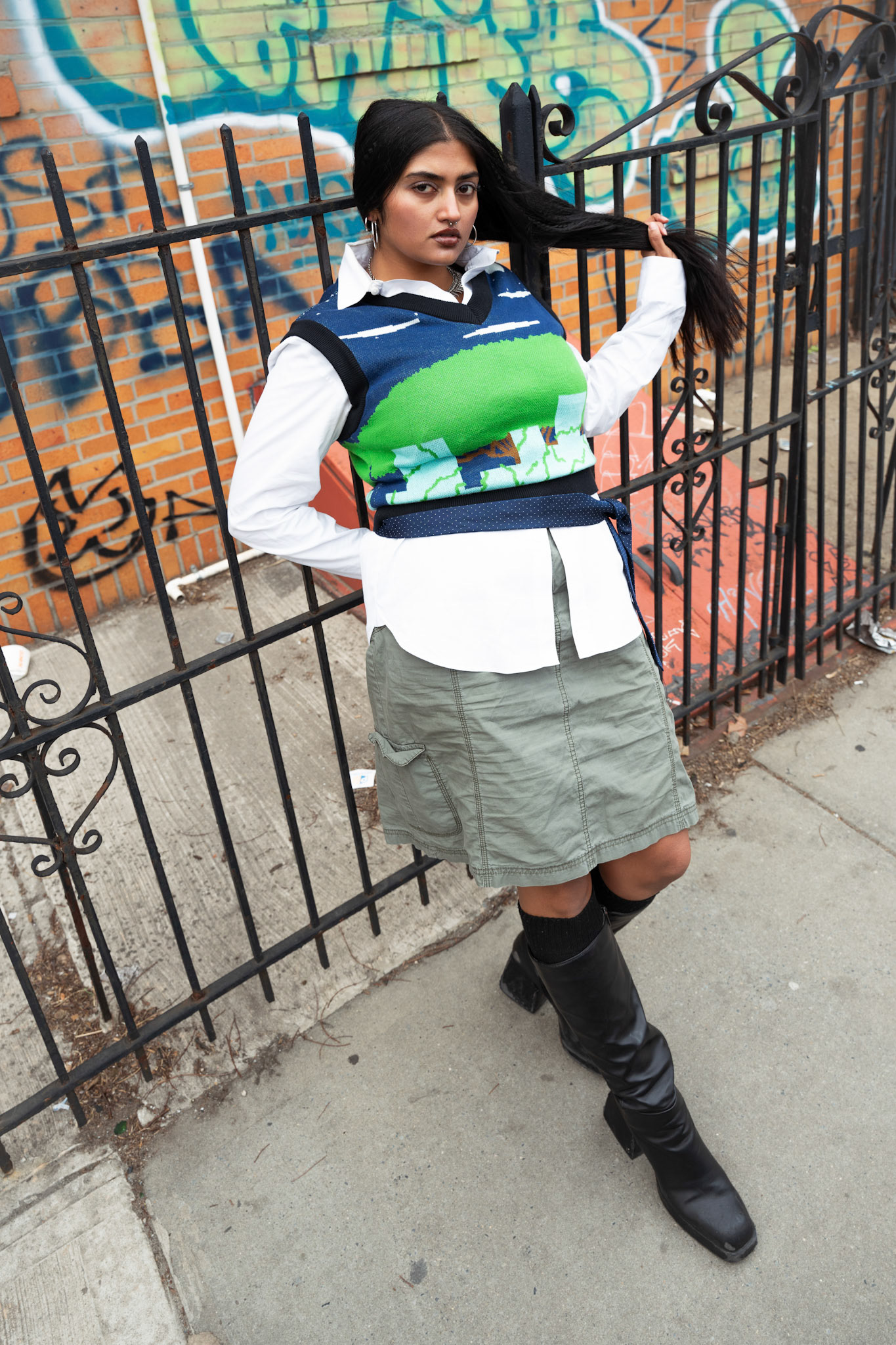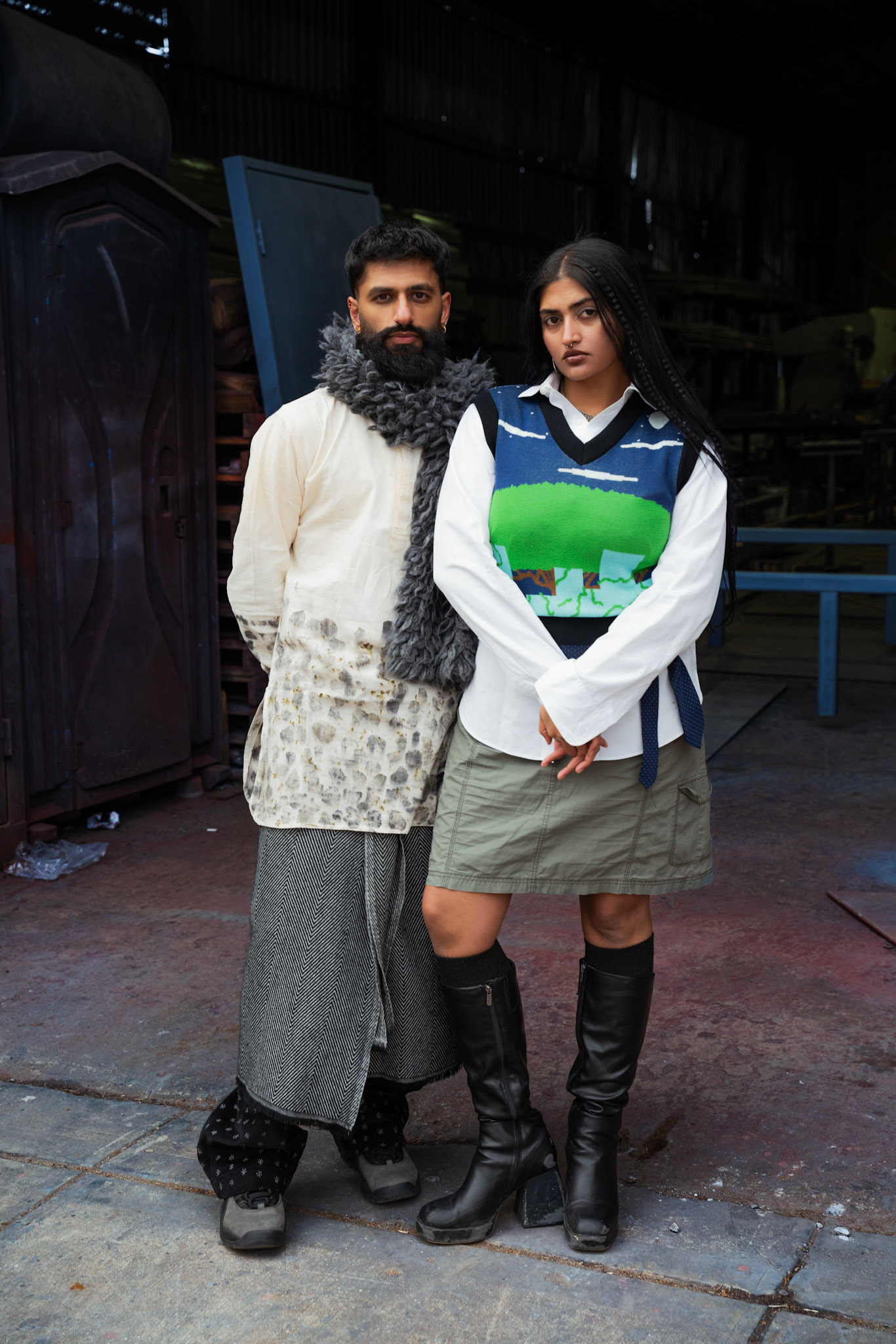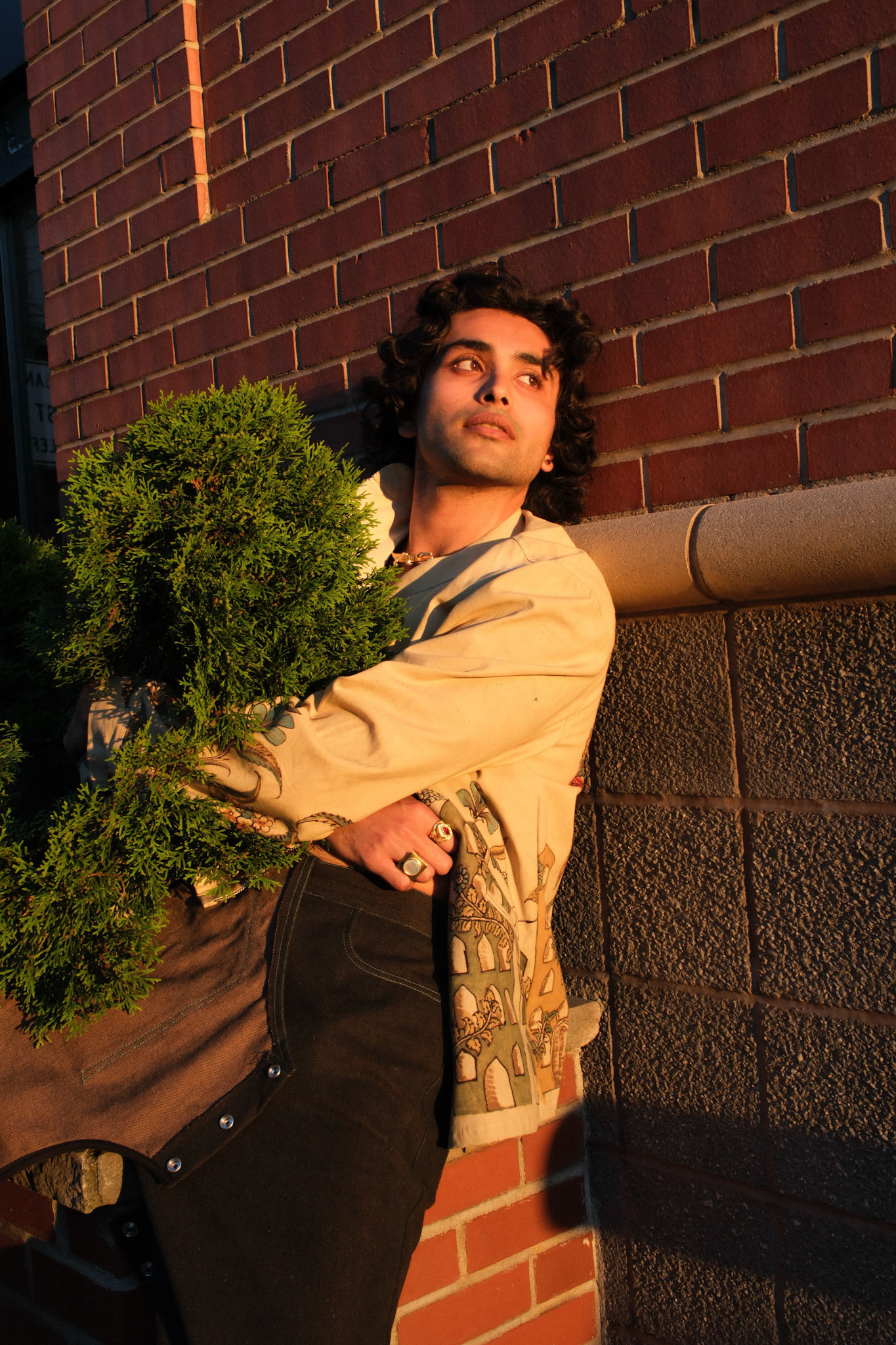 This campaign brought natural motifs to clash with the grunginess of Brooklyn. The flower & iron printed kurta and jacquard vest brought Nature to the concrete, styling in a way that's a bit disheveled to reflect the nonchalance of New York fashion.