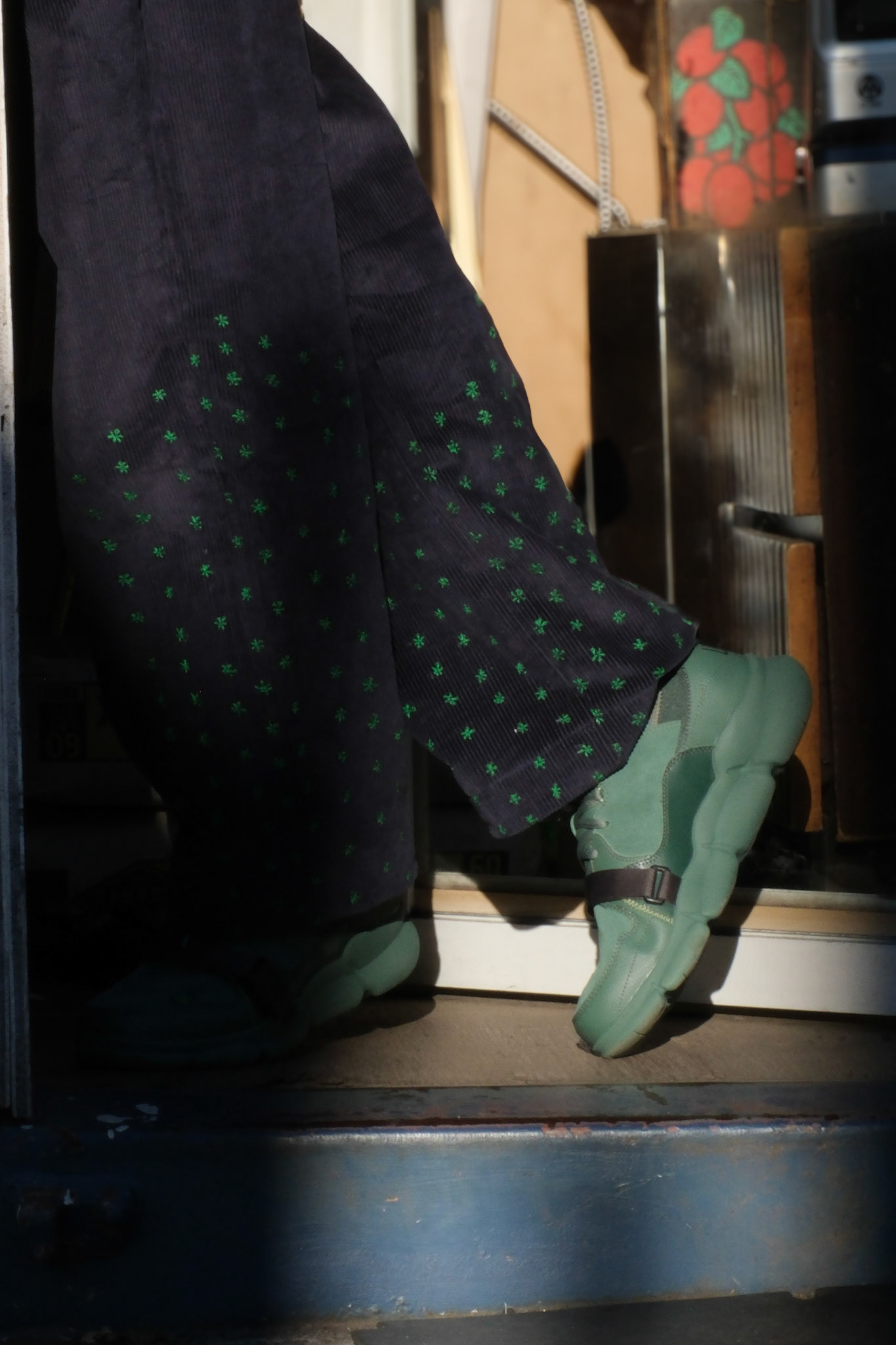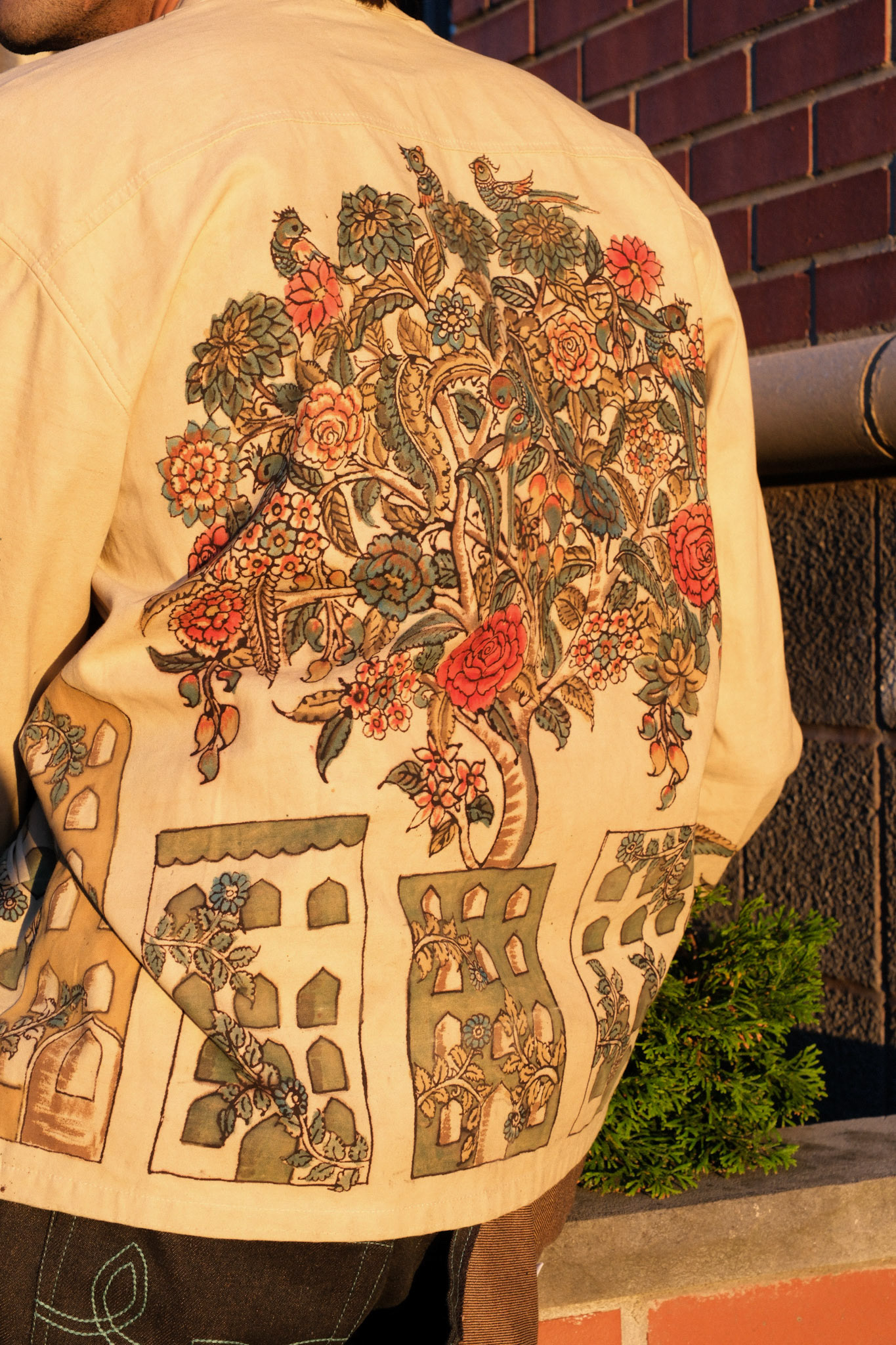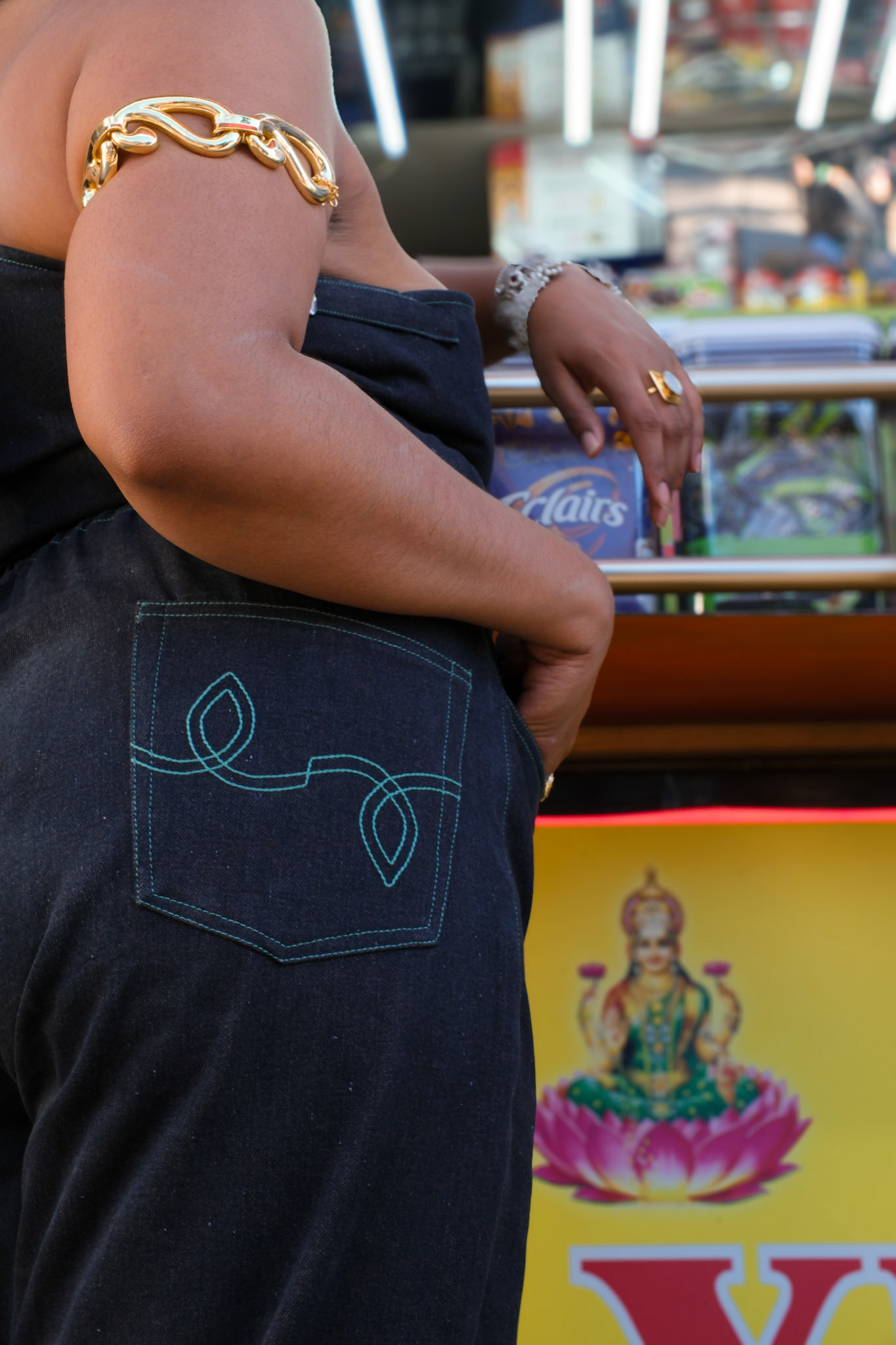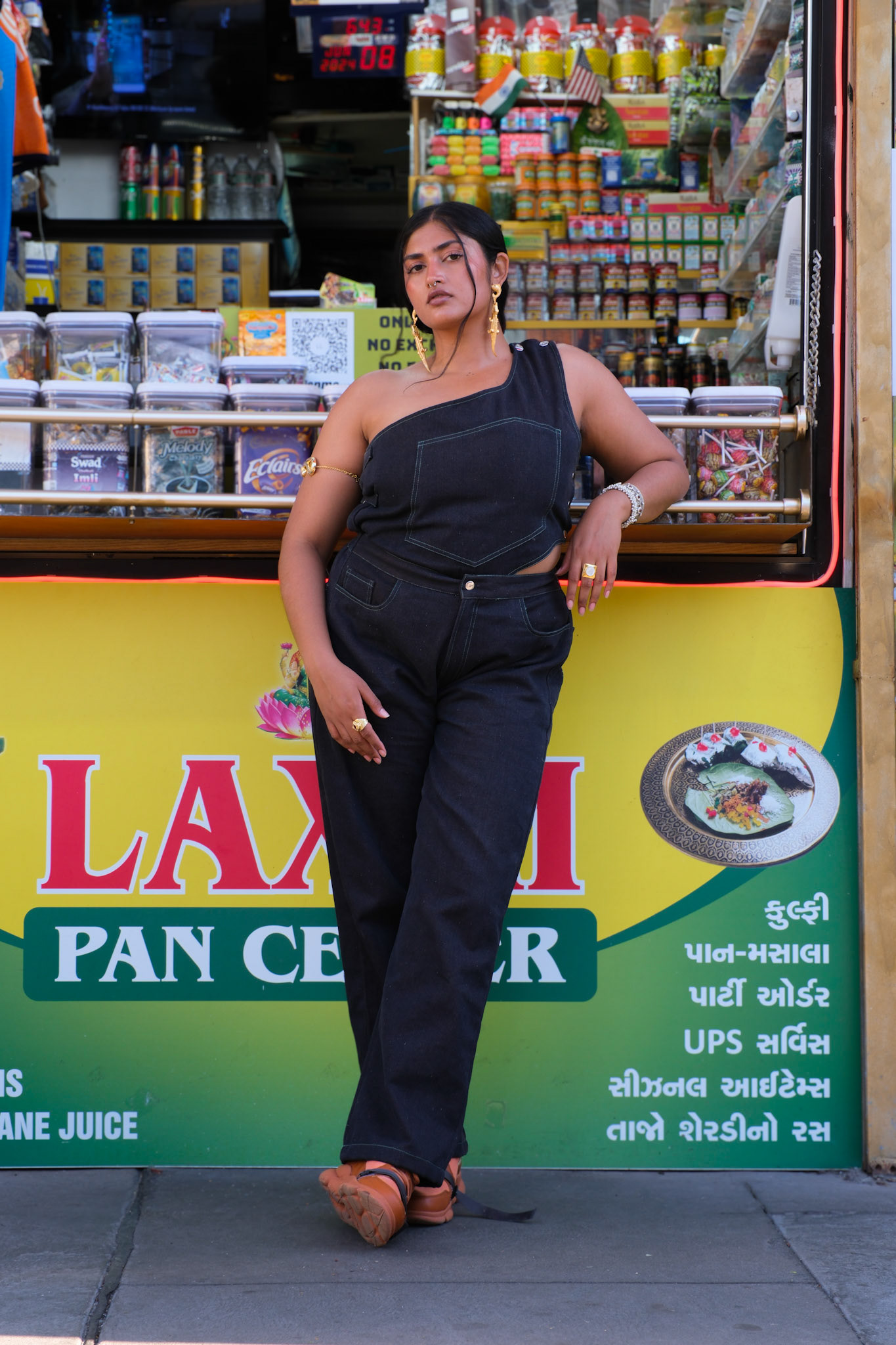 This campaign for the denim jumpsuit and kalamkari jacket was shot in Jersey City's India Square. Meant to represent a normal day out in the diaspora, we used the community as our backdrop