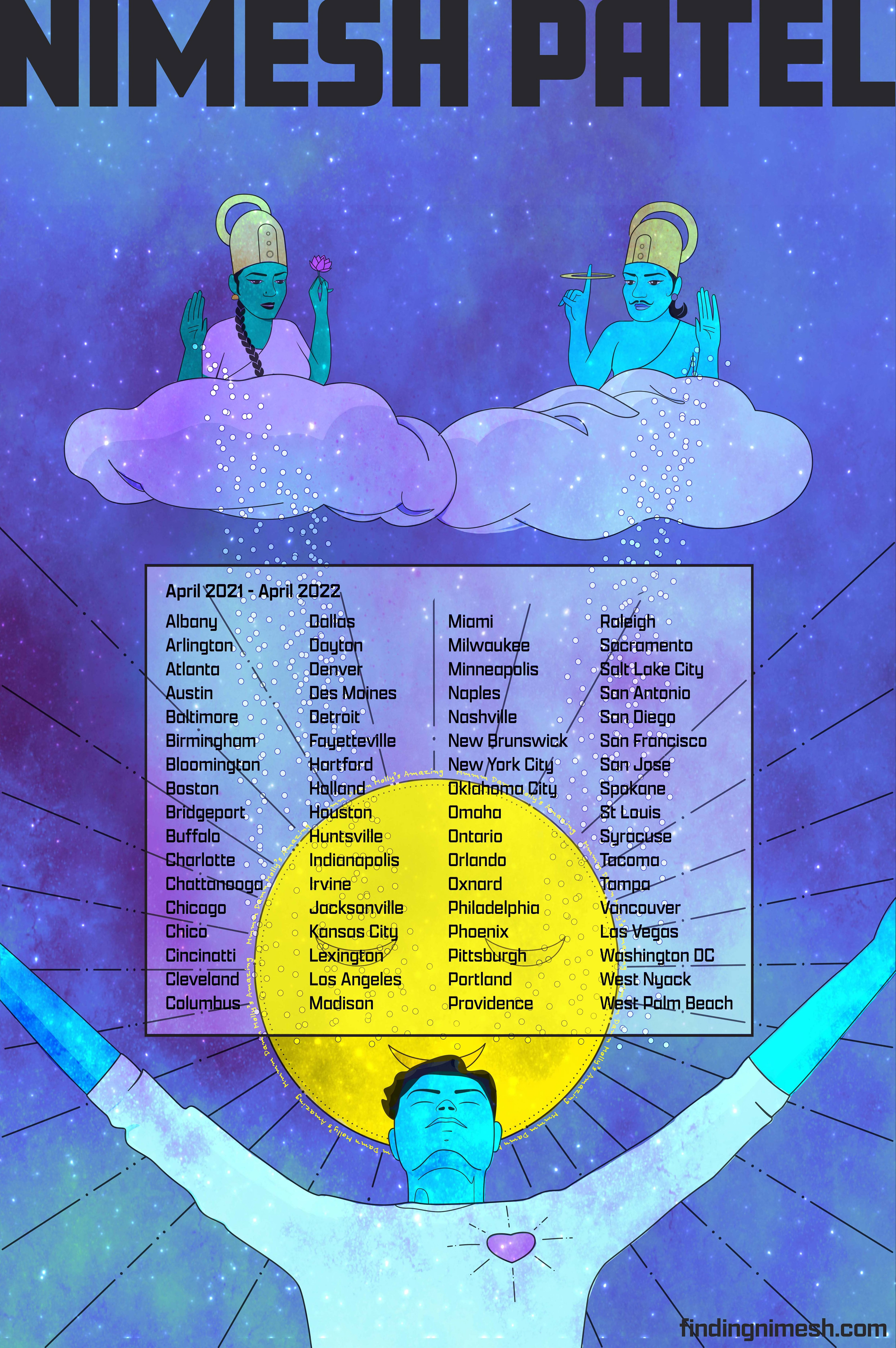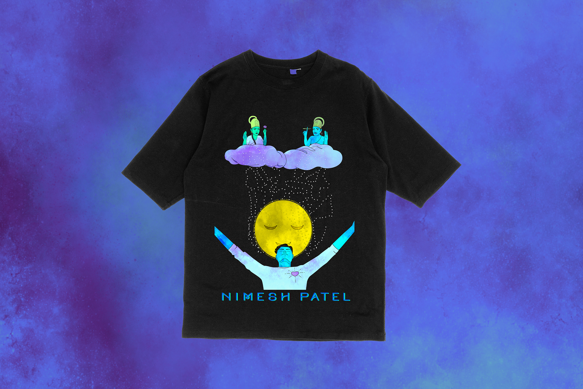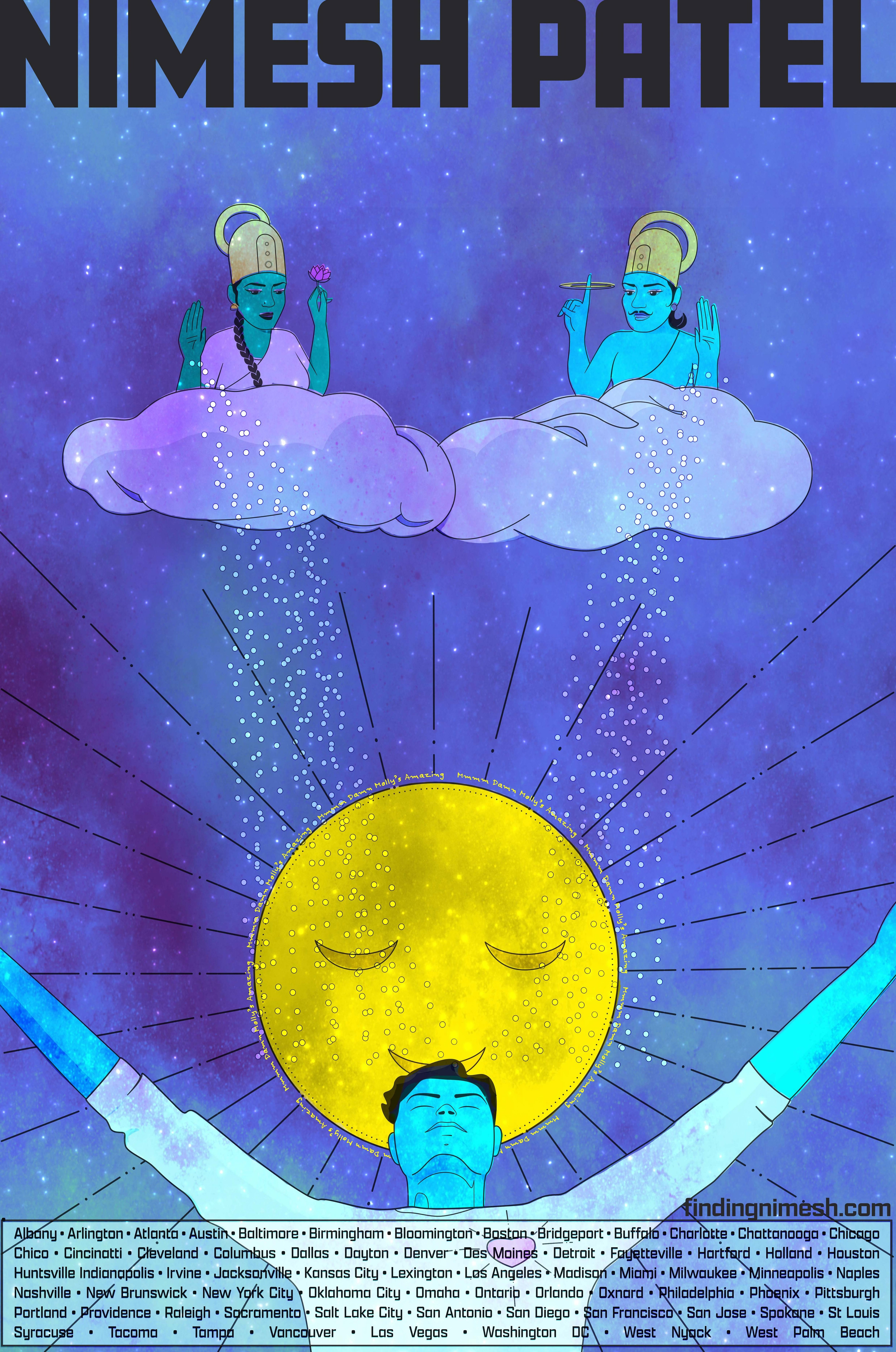 I was commissioned by comedian Nimesh Patel to design merchandise for his nationwide tour. The illustration was printed on t-shirts and promotional posters.