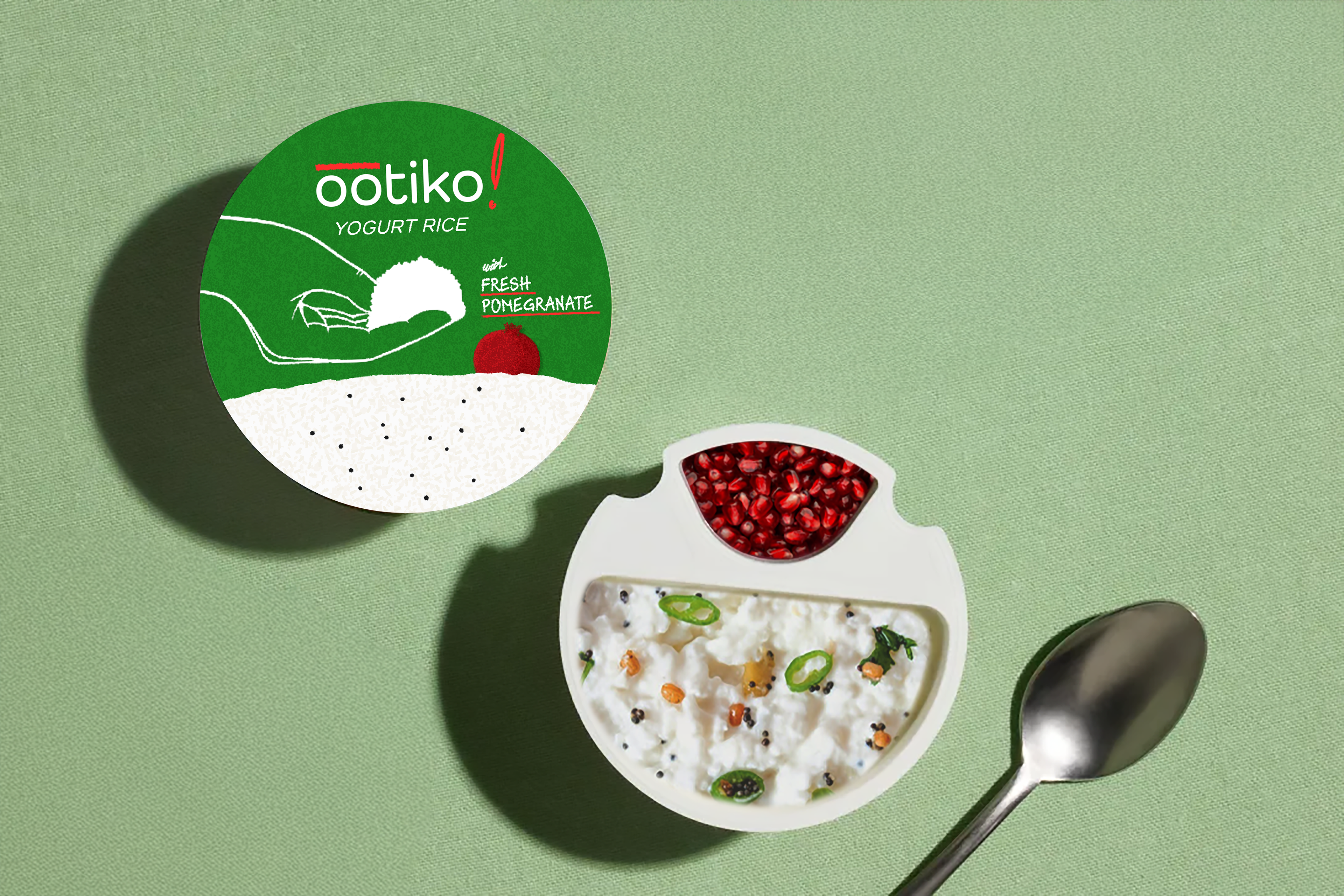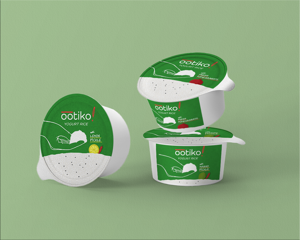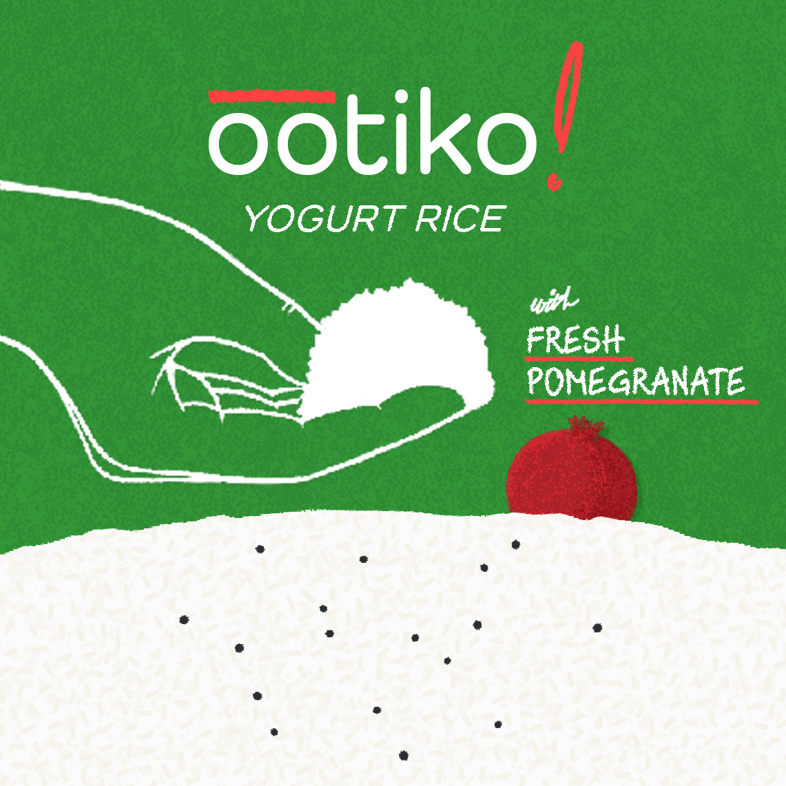 The brand name Ootiko comes from the Tamil word meaning 'feed yourself', an endearing term that moms say to children when serving meals. The word mark is meant to emulate this feeling of playfulness and excitement giving kids the agency to choose their favorite snack - yogurt rice being the ultimate comfort food.