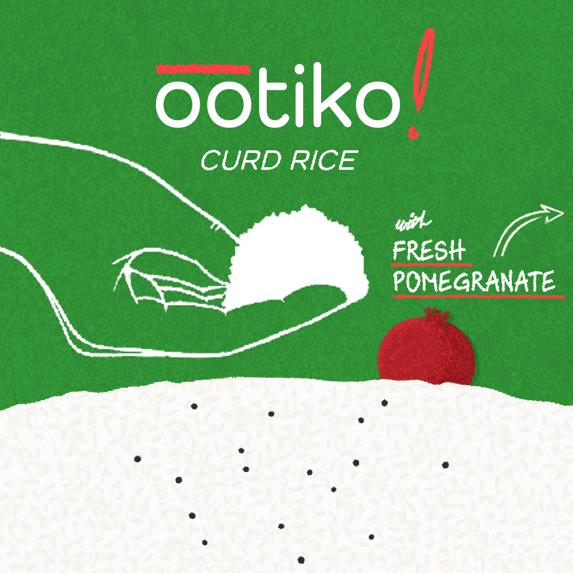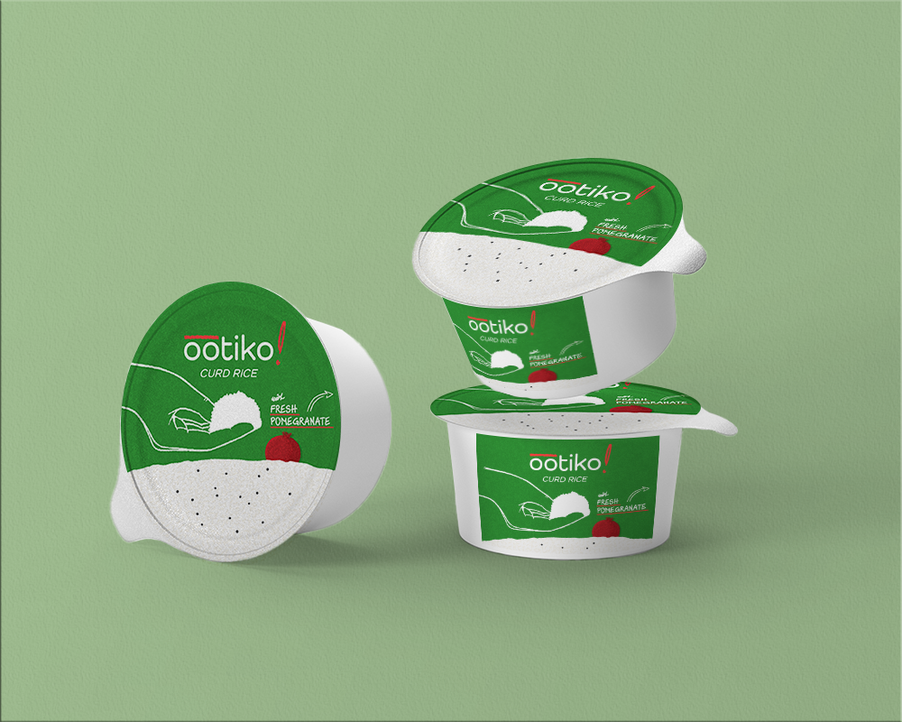 The brand name Ootiko comes from the Tamil word meaning 'feed yourself', an endearing term that moms say to children when serving meals. The word mark is meant to emulate this feeling of playfulness and excitement giving kids the agency to choose their favorite snack - curd rice being the ultimate comfort food.