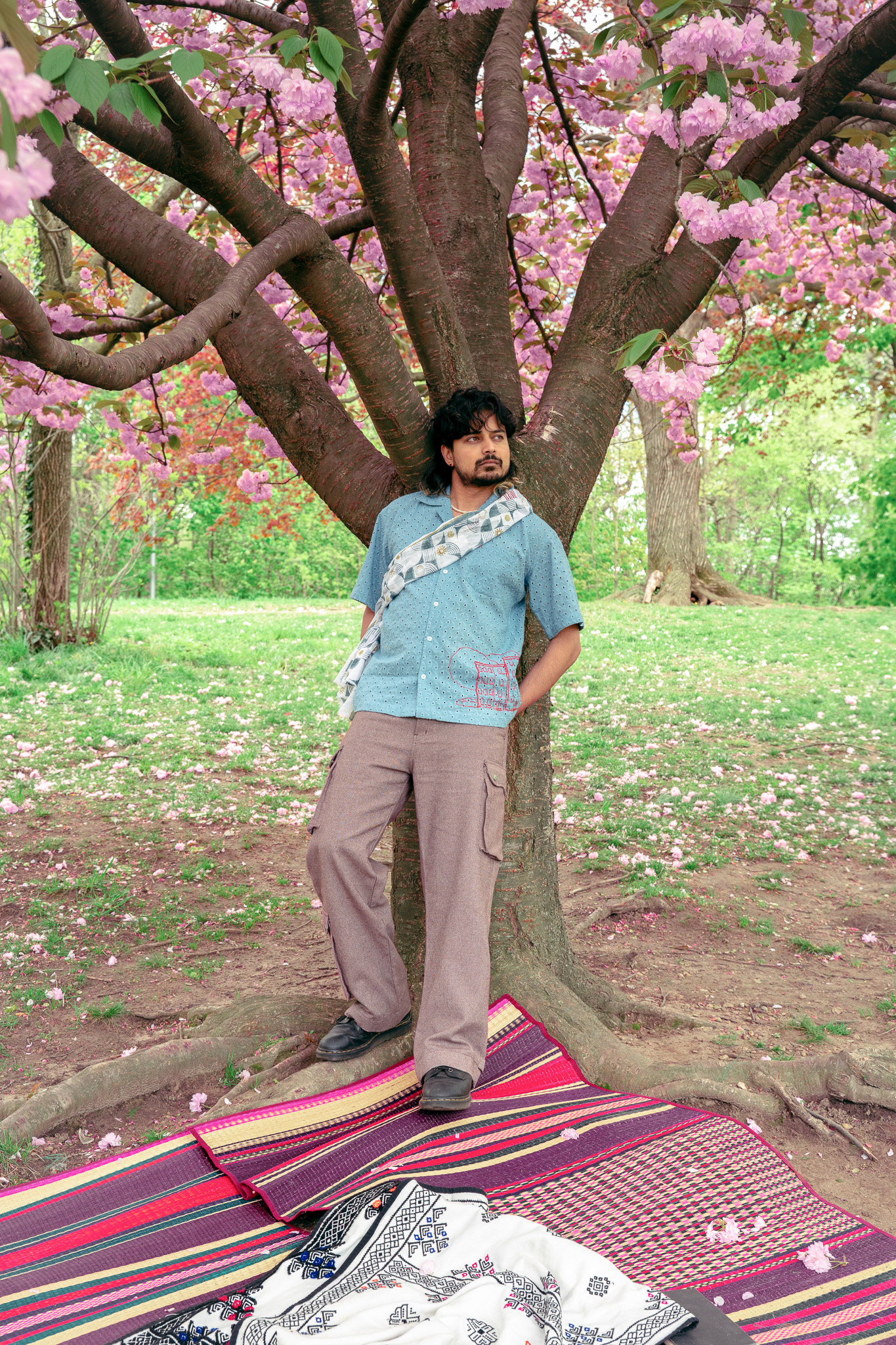 We shot this campaign under the cherry blossoms in Prospect Park, to showcase the camp shirt and cargo pants as the perfect park day fit.